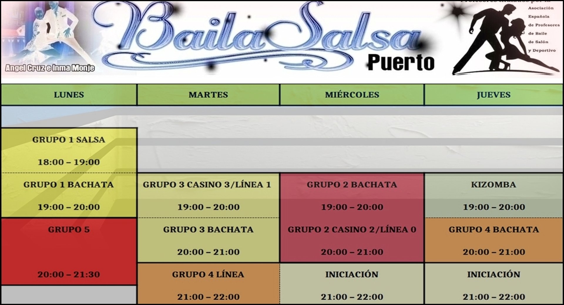 En BailaSalsa Puerto llevamos formando bailadores desde el año 2006. Nuestros profesores titulados, Ángel Cruz e Inma Monje, son expertos en salsa, bachata, kizomba, mambo, chachachá y bailes de salón en la modalidad latinos y han participado en numerosos congresos nacionales e internacionales como instructores y bailarines.