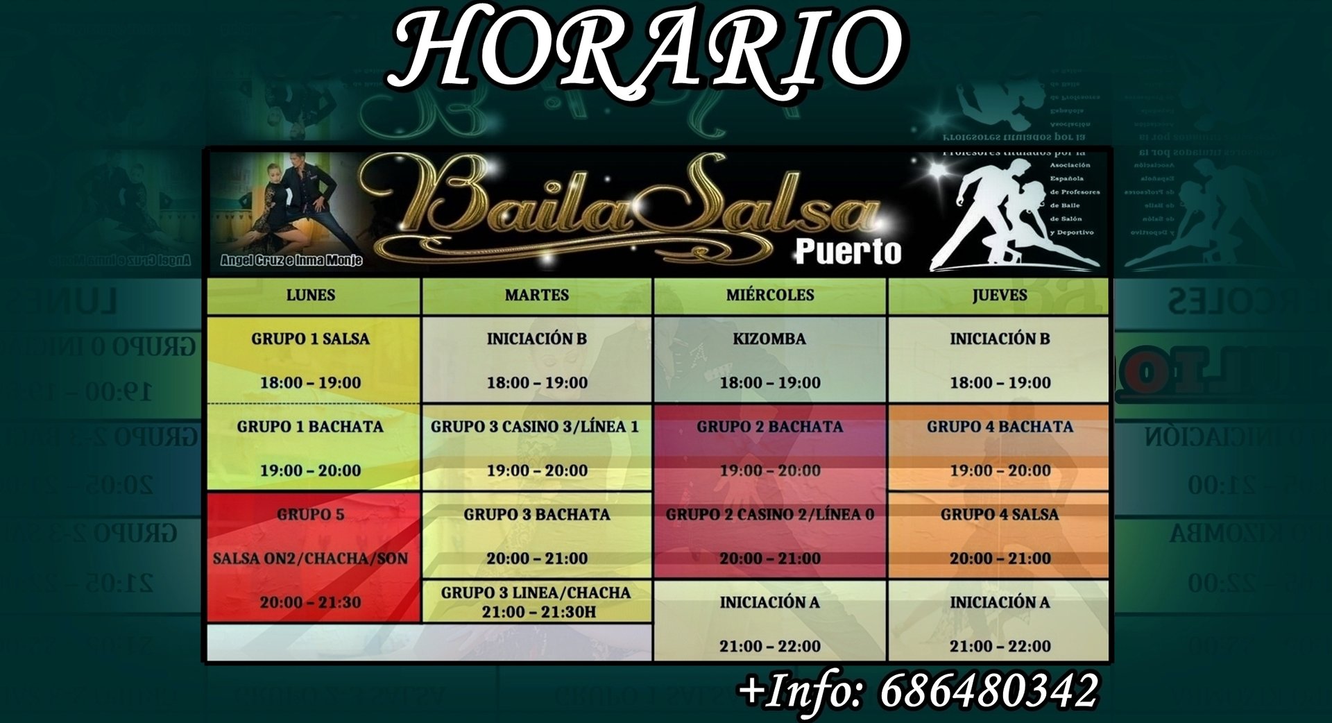 En BailaSalsa Puerto llevamos formando bailadores desde el año 2006. Nuestros profesores titulados, Ángel Cruz e Inma Monje, son expertos en salsa, bachata, kizomba, mambo, chachachá y bailes de salón en la modalidad latinos y han participado en numerosos congresos nacionales e internacionales como instructores y bailarines.